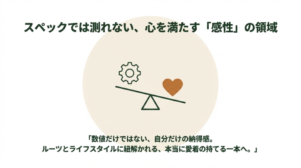 作り手の想いや自分の生活スタイルとの相性を紐解くことで、本当に愛着の持てる一本が見つかるはずです。